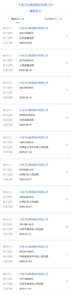 更值得警惕的是,这笔 1.86 亿元的案件仅是万达债务冰山的一角。截至 9 月底,万达集团已有 10 条被执行人信息,累计被执行金额达 52.63 亿元,涉及北京、上海、成渝三家专业金融法院审理的多起案件,申请执行人包括中国银行、上海国际信托等多家金融机构。这些案件集中在金融法院审理的特点,凸显了纠纷的金融属性与复杂性,暗示万达的债务问题已从项目层面蔓延至核心金融领域。