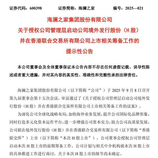 近期,素有 “男人衣柜” 之称的海澜之家发布公告称,将启动公司境外发行股份(H 股)并在港交所上市。