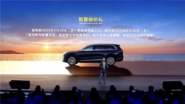 今年 5 月 22 日,深蓝汽车的战略旗舰车型深蓝 S09 正式上市,定位家庭大六座智慧 SUV,官方指导价 23.99 万元起。作为深蓝汽车冲击高端市场的车型,时任深蓝汽车 CEO 邓承浩对其寄予厚望。在发布会上,他提到现在行业降价现象比较普遍,S09 会不会上市几个月就降价?邓承浩表示,要像保护品牌一样保护深蓝 S09,没有降价的想法,承诺深蓝 S09 “一年保价”。具体而言,凡在今年 6 月 30 日(含)前下订用户,统一保价至 2026 年 6 月 30 日,包括市场指导价下调或现金促销,解决用户对 “入手即降价” 的忧虑。