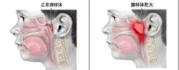 除了影响面容,腺样体肥大还会引发一系列健康问题。由于耳朵和鼻子通过咽鼓管相连,腺样体肥大堵塞咽鼓管开口,会导致分泌性或化脓性中耳炎,出现耳痛、耳鸣、耳闷、听力下降等症状。孩子长期处于缺氧状态,还会造成内分泌功能紊乱,影响生长发育,表现为厌食、呕吐、营养不良,身高体重增长缓慢。睡眠质量的下降,也会让孩子变得性情暴躁、易激惹、注意力不集中,严重影响学习成绩。