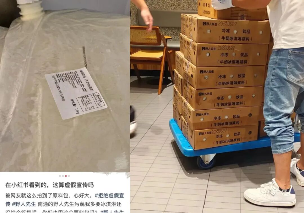 此前,有消费者质疑,野人先生的冰淇淋并非现场制作,而是从后厨直接取出冷冻产品售卖。据媒体实地调查,该品牌使用的牛奶浆料包保质期长达半年,由公司统一配送,每周进货一次。此外,有消费者称,在门店内未看到冰淇淋机器,怀疑产品是半成品。对此,野人先生客服回应称,冰淇淋机不会在门店前台出现。