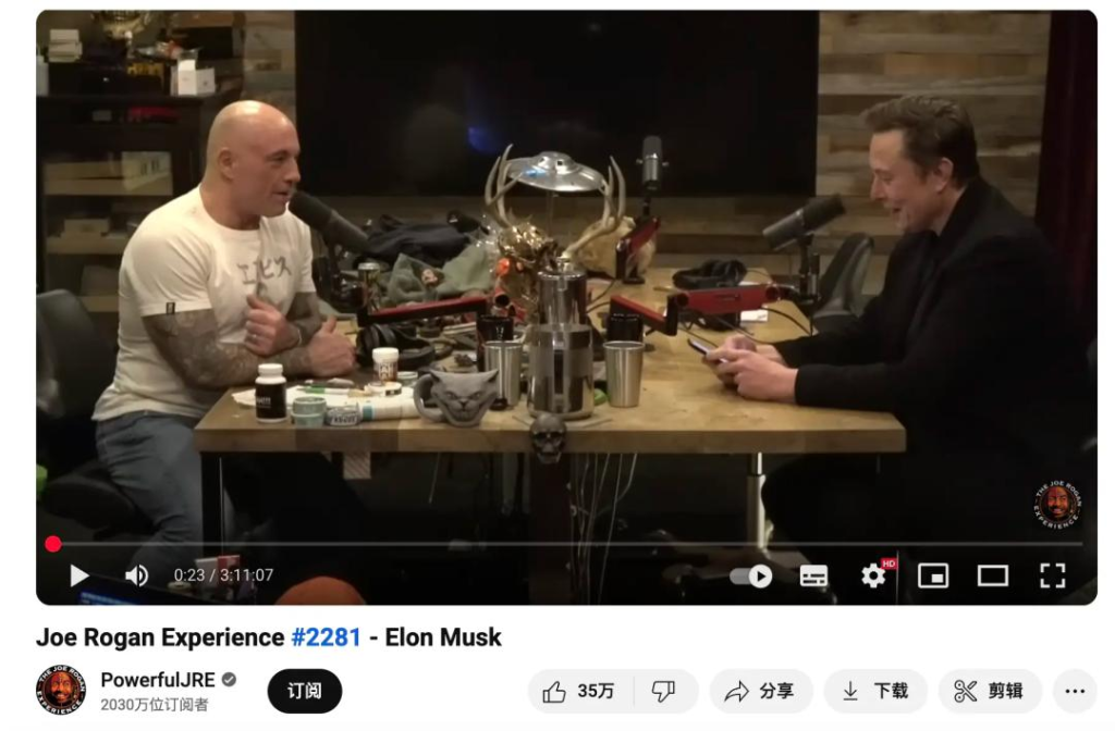 美国 “播客之王” Joe Rogan 的成功,常被视作中文视频播客的对标范本。但二者存在本质差异:Joe Rogan 的节目以观点碰撞和深度对话构建核心吸引力,访谈对象的顶流身份是附加值而非全部;而国内名人视频播客中,嘉宾的个人话题早已盖过对话本身,周鸿祎的 AI 见解远不如其过往言论的 “切片” 传播度高。这种 “话题优先于内容” 的倾向,使得视频播客沦为碎片化情绪的集散地,而非信息增量的供给源。